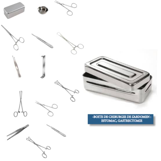 The abdominal surgery set, specifically for stomach and gastrectomy surgery, has several key features: