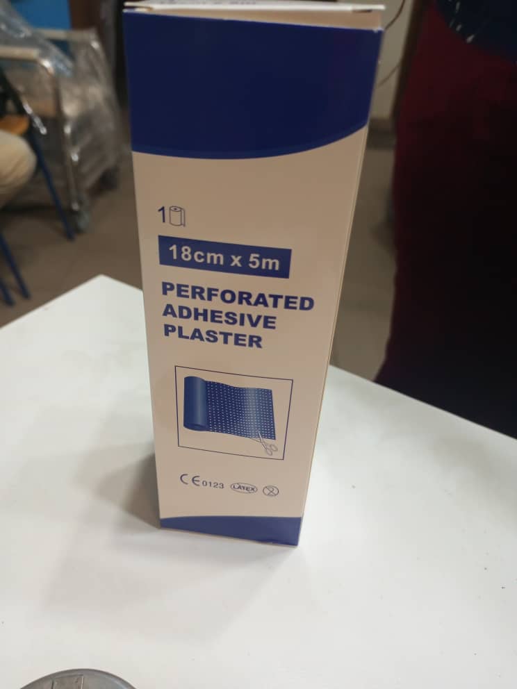 The characteristics of the 18 cm x 5 m perforated adhesive tape are as follows:
