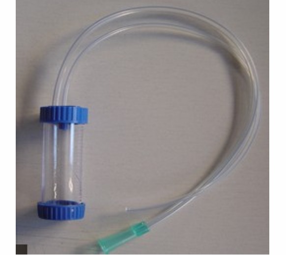 It features a transparent chamber to allow visual inspection of the aspirated contents.