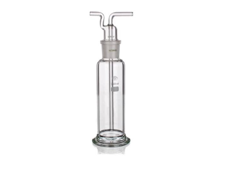 Design: It consists of a main flask with a standard ground joint, equipped with two glass tubes. One of the tubes immerses the washing liquid, while the other serves as an outlet for the treated gas.