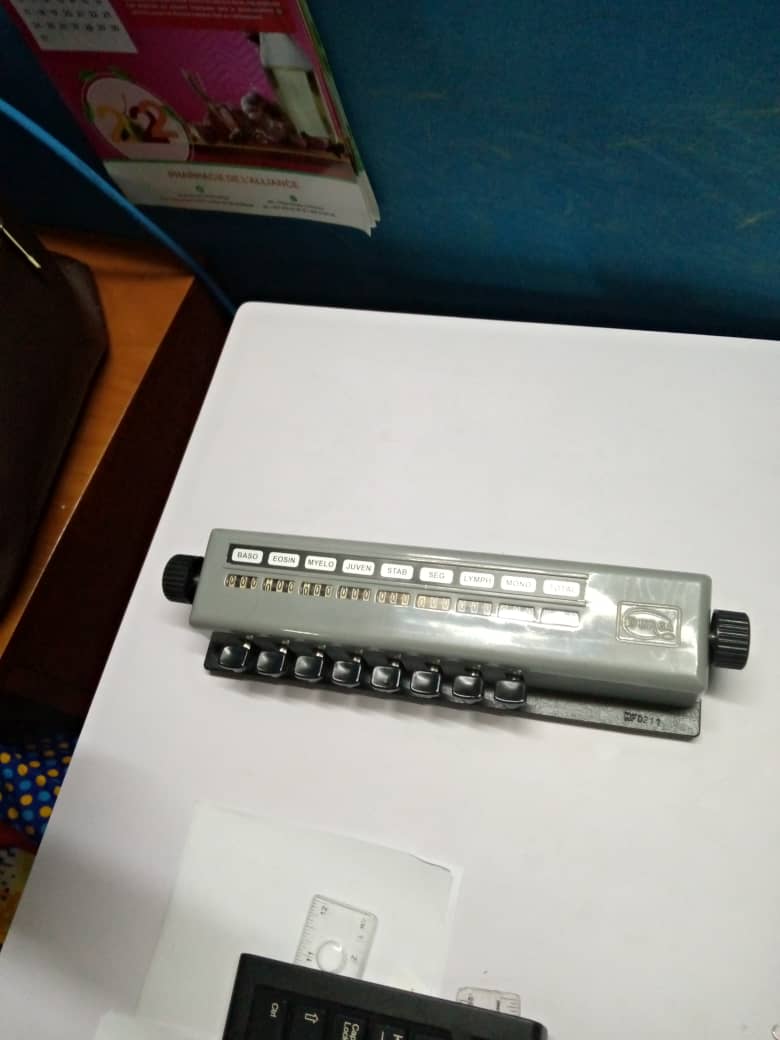 Manual differential blood cell counter, commonly used in laboratories for counting different types of blood cells.