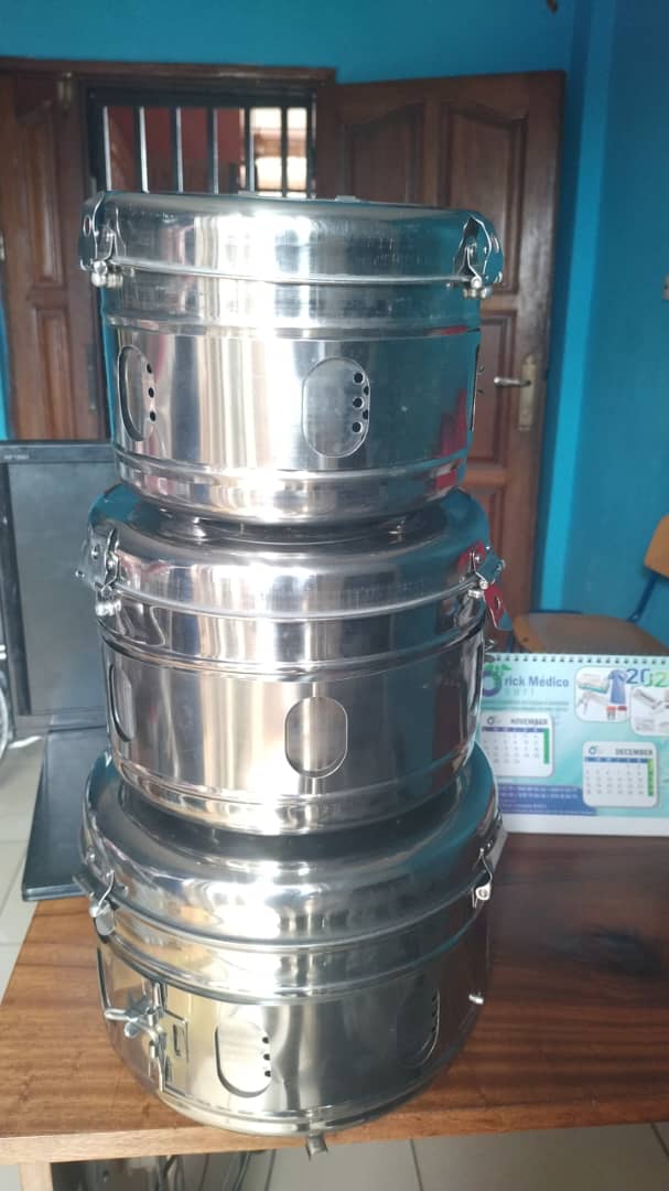 Stainless steel steam sterilization drums are commonly used in medical or laboratory environments for sterilizing instruments and equipment.