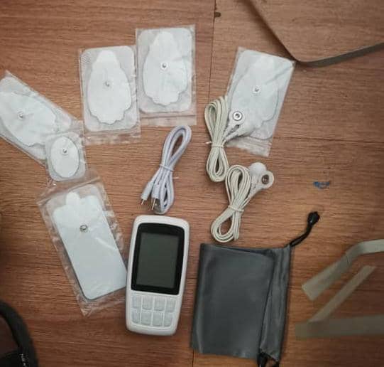 Components: It consists of a main unit (often the size of a small cell phone), connecting wires, and several sets of adhesive electrodes.
