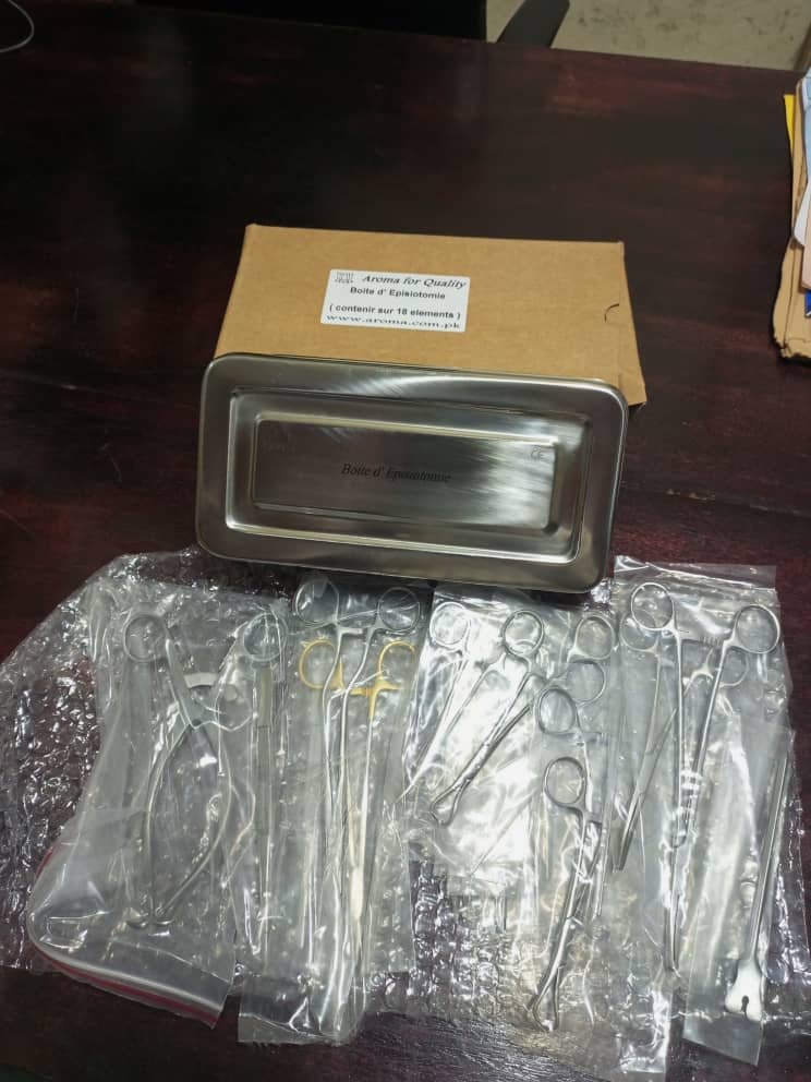 The “Aroma for Quality” episiotomy box is a set of sterile surgical instruments, usually made of stainless steel, used to perform and suture an episiotomy during childbirth.