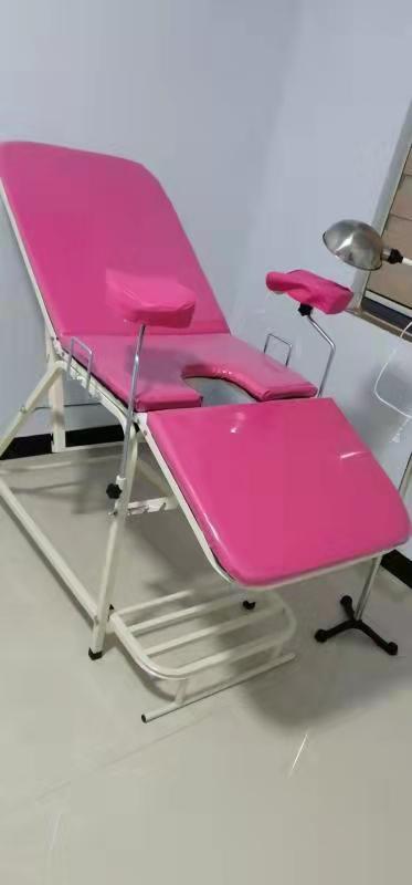 The delivery table, typical of a gynecological or delivery table, has several essential features for patient comfort and ease of use by medical staff.