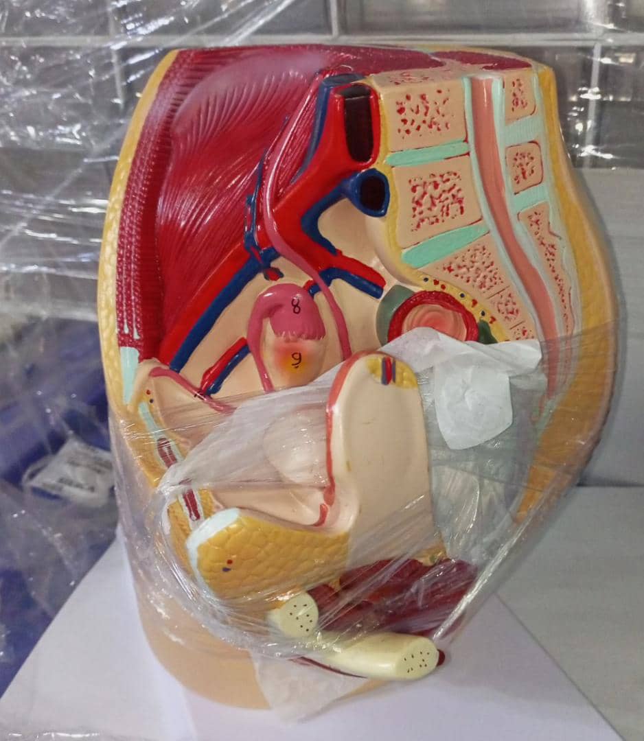 The male reproductive system anatomical model offers a midsagittal view of the male pelvis, showcasing the structure and arrangement of the reproductive organs, bladder, and rectum.