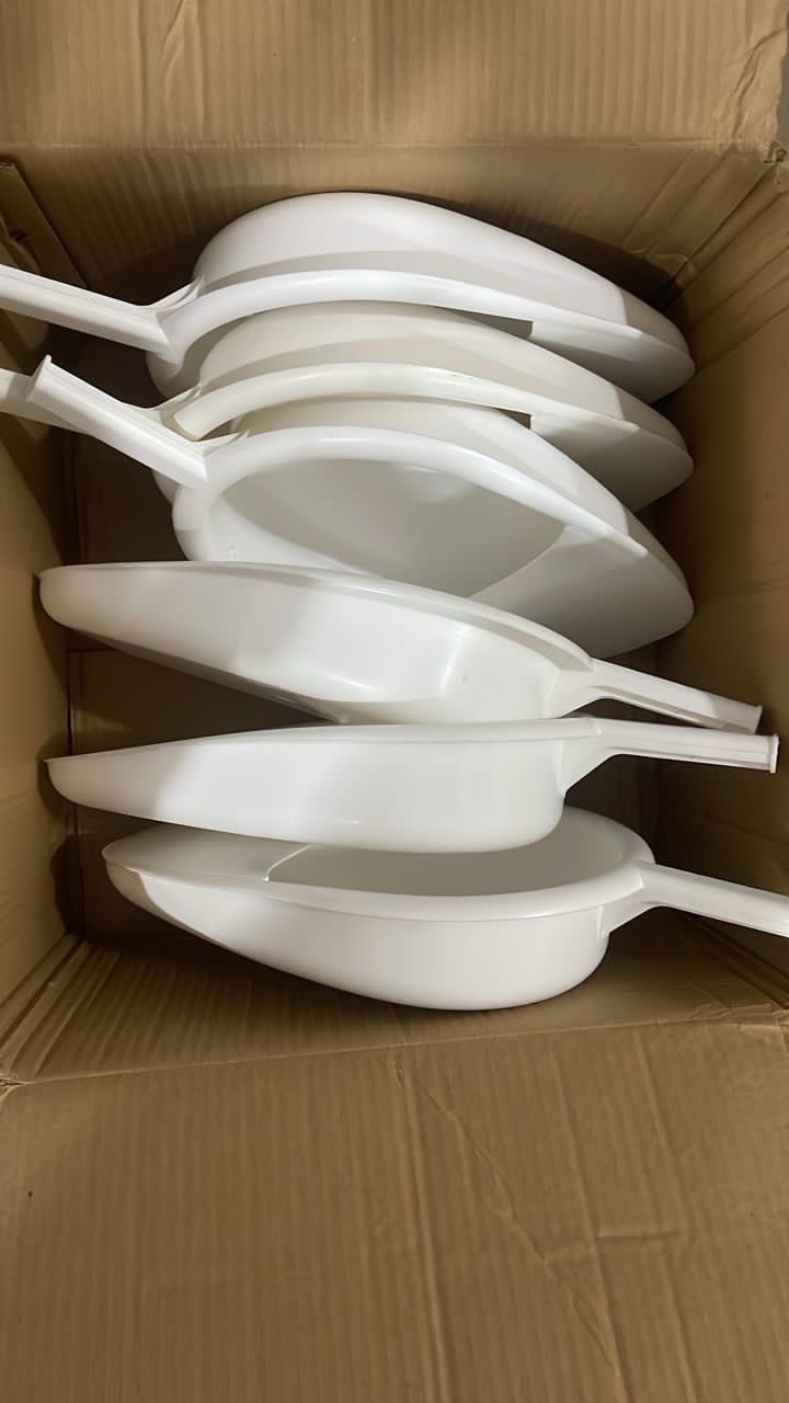 Plastic bedpans are essential hygiene tools for bedridden patients.