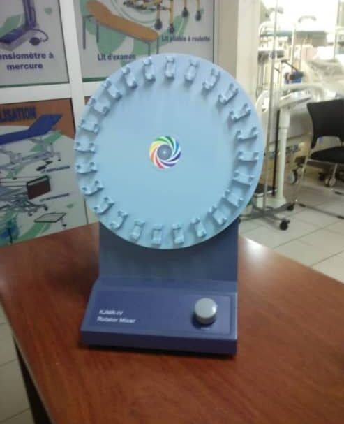 The Rotator Mixer, also referred to as a “Rucator Mixer” or model KJMR-IV, is designed for consistent mixing of biological samples or cell suspensions, such as whole blood in collection tubes.