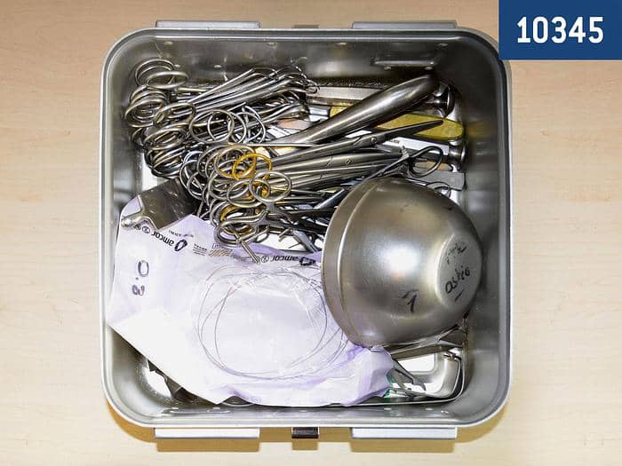 A small osteosynthesis box is a stainless steel case designed to contain and organize surgical instruments specific to osteosynthesis, a technique used to fix bone fragments after a fracture.