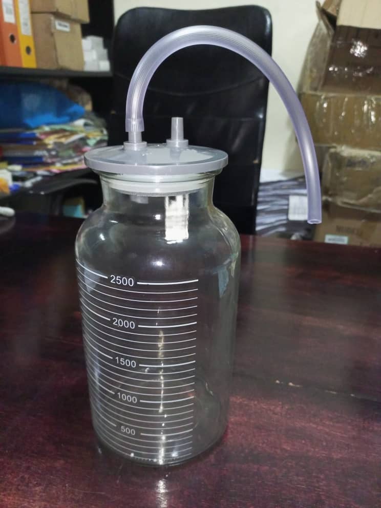 Graduations: Volume markings are present on the side, allowing the suctioned liquid to be measured (500, 1000, 1500, 2000, 2500).
