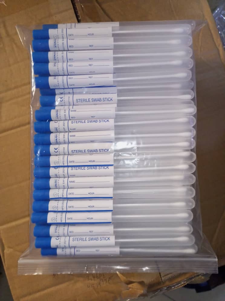 Design: Each swab consists of a plastic stick and one end covered with an absorbent material (cotton).