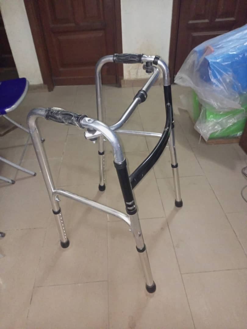 It is made of a lightweight aluminum metal frame, designed to provide stable support to the user while walking.